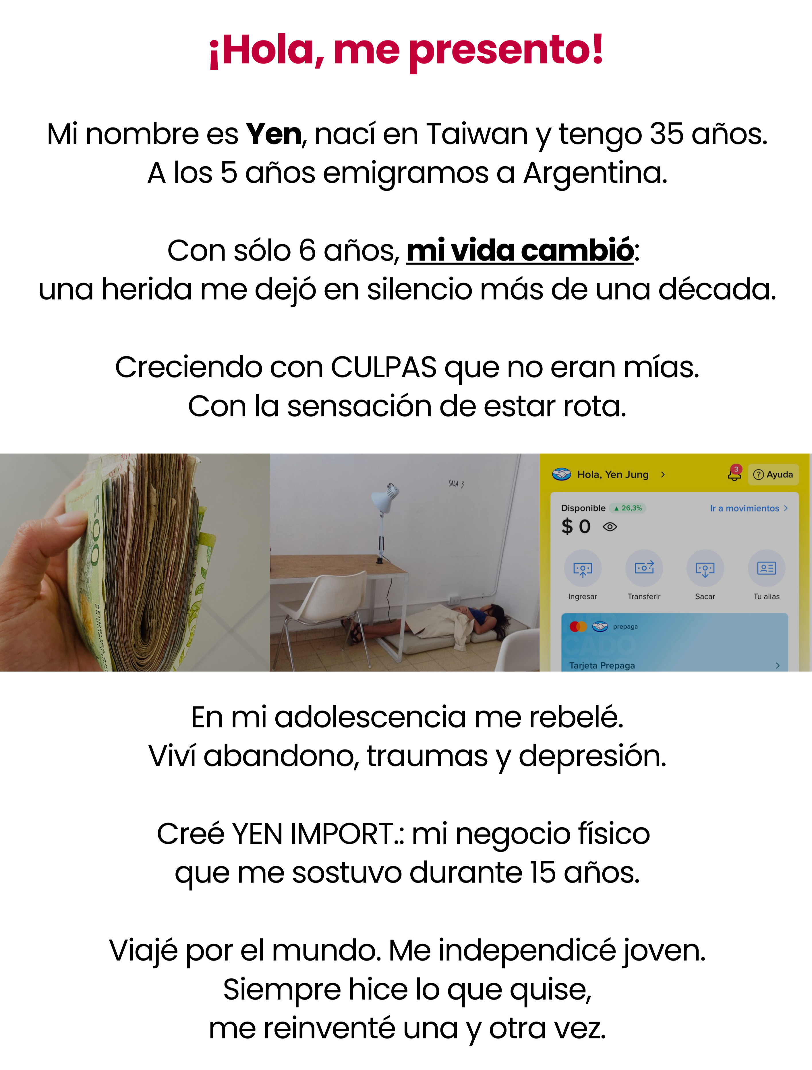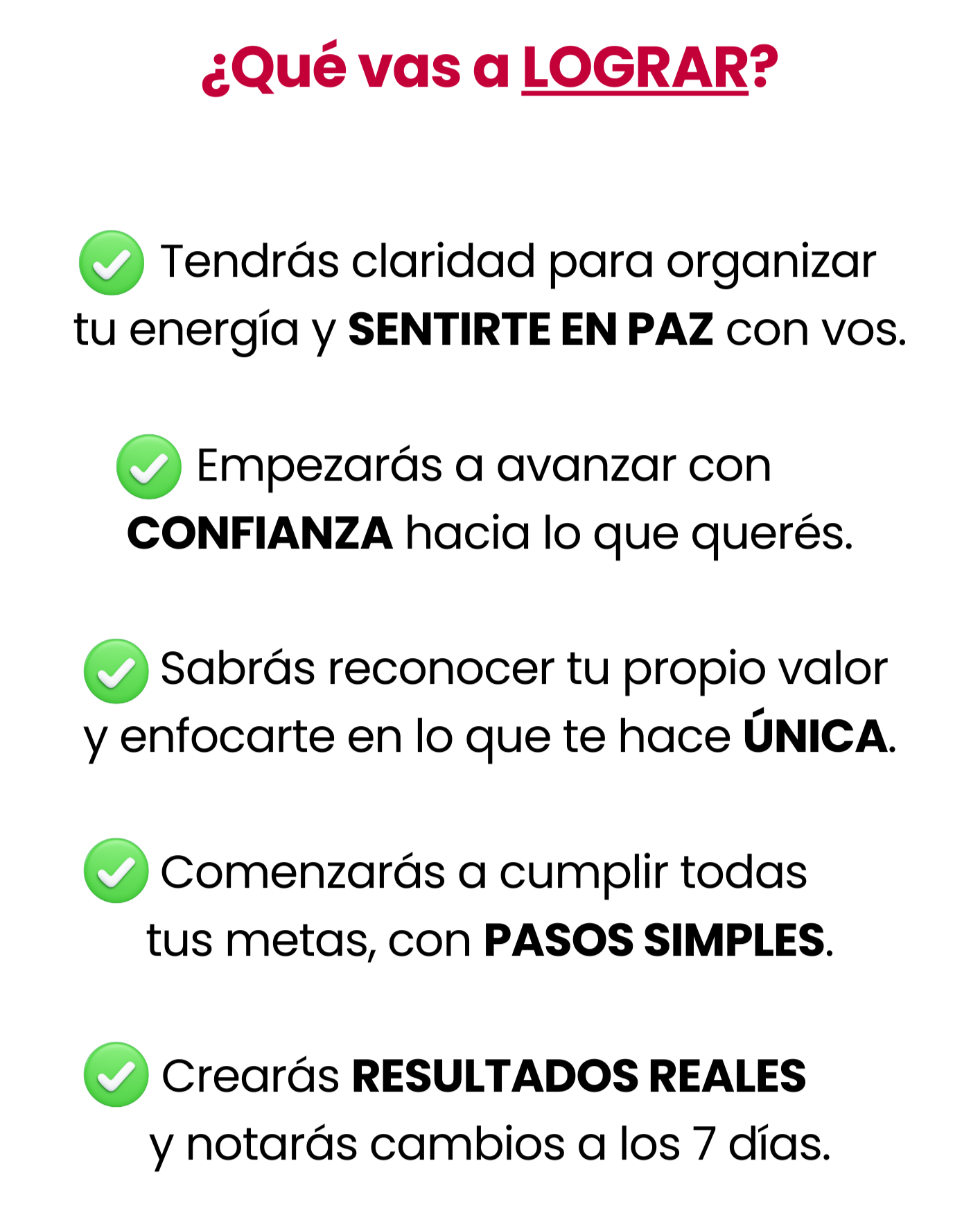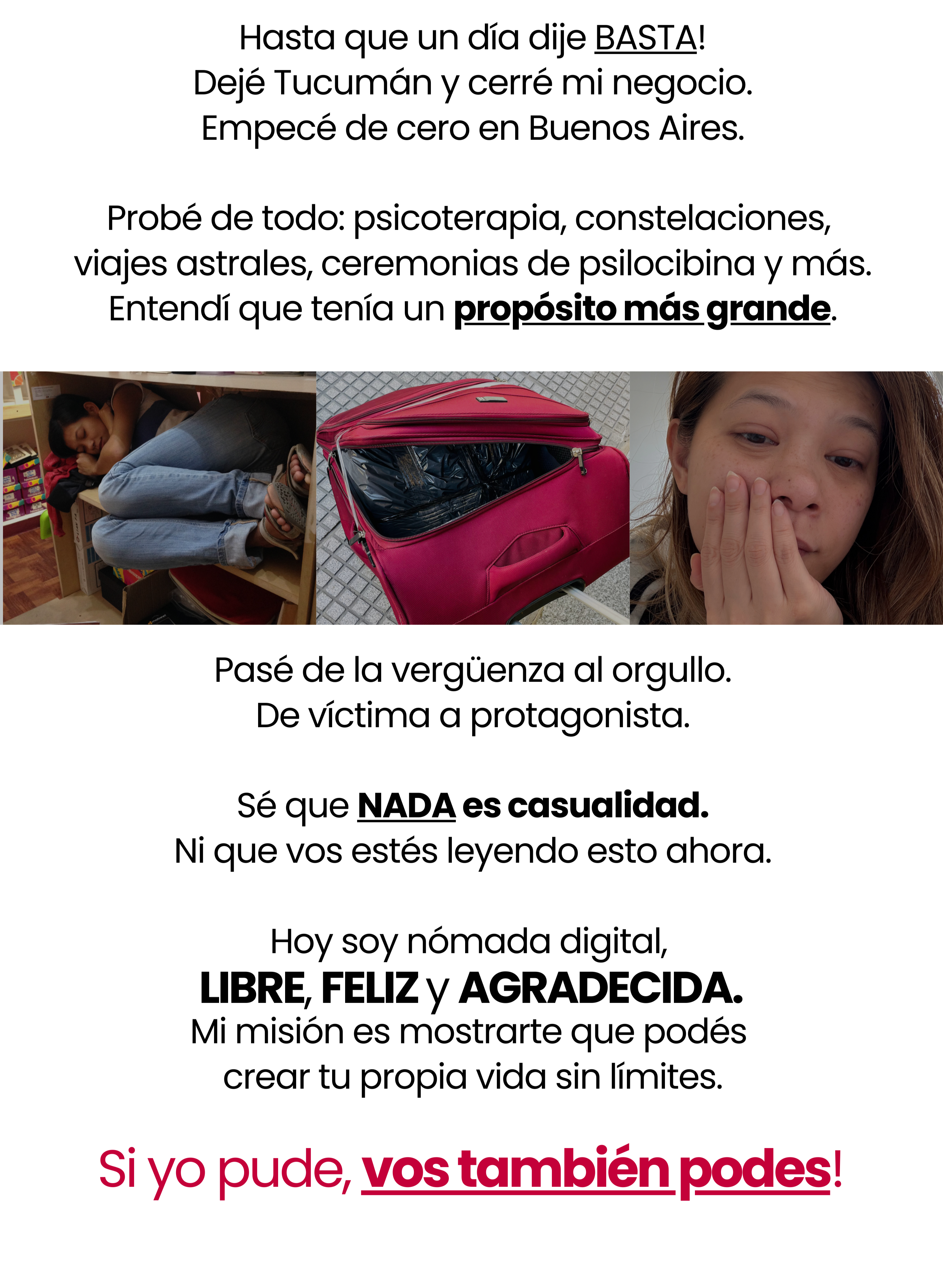 Internet te da piezas sueltas. Acá tenés un camino completo, probado y con resultados reales. Un atajo directo en lugar de perder años buscando. Años de EXPERIENCIA y miles de dolares invertidos en terapias, mentores y ayudas alternativas.