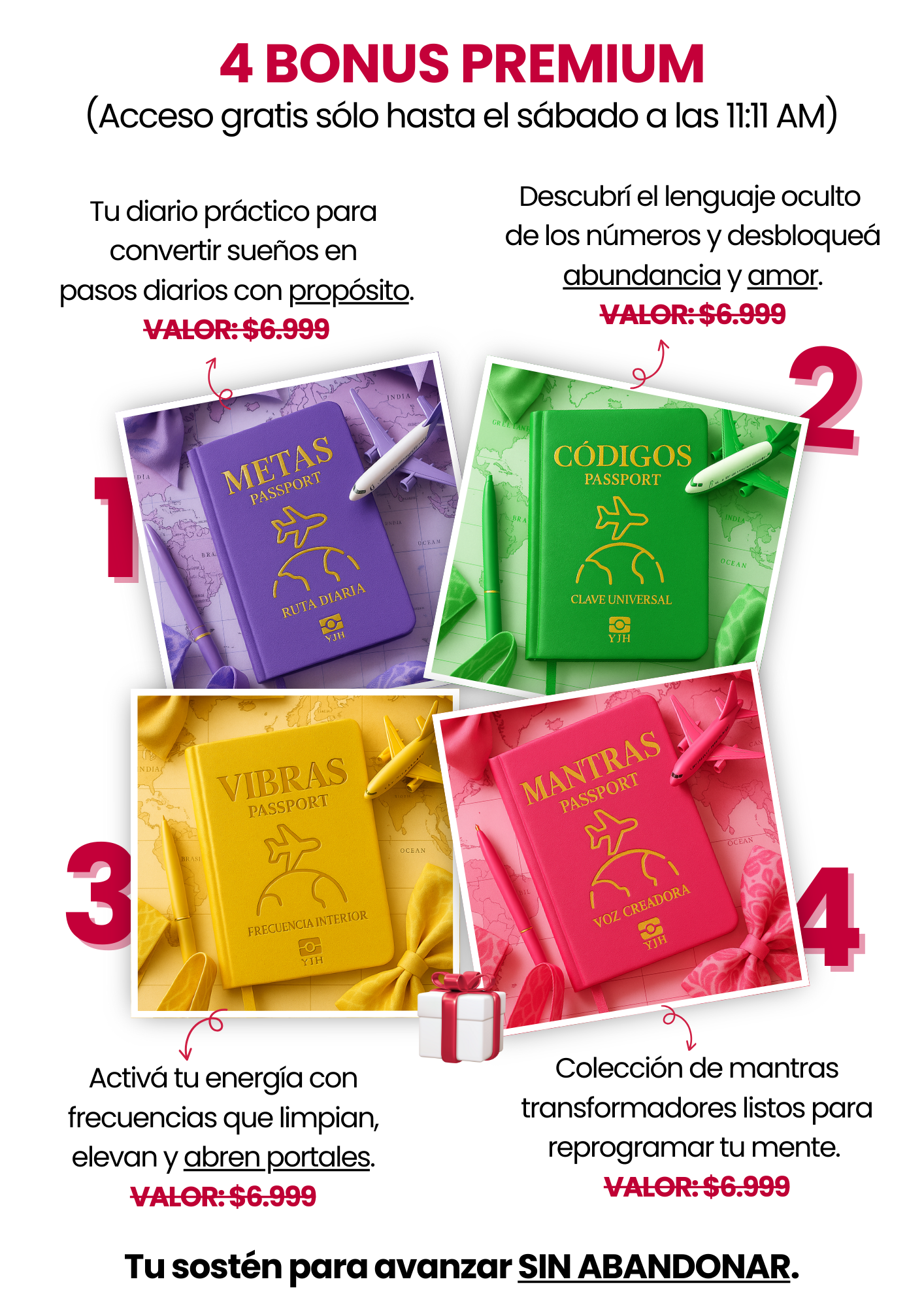 Recibís de inmediato tu acceso al ebook digital + 4 Bonus DE REGALO + Comunidad Privada + 4 Mentorías Grupales en tu mail. Todo en formato PDF listo para abrir en tu compu o celular.