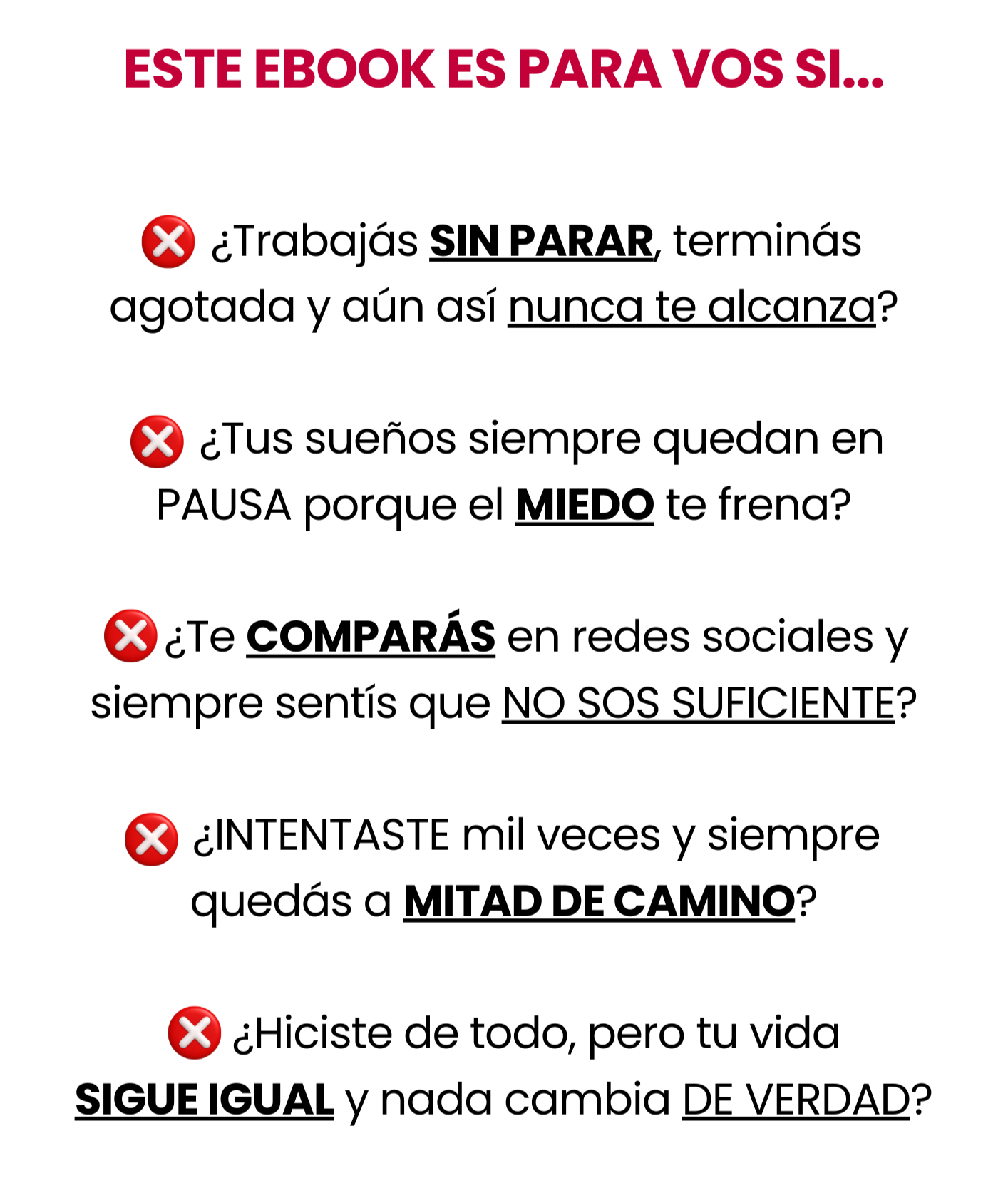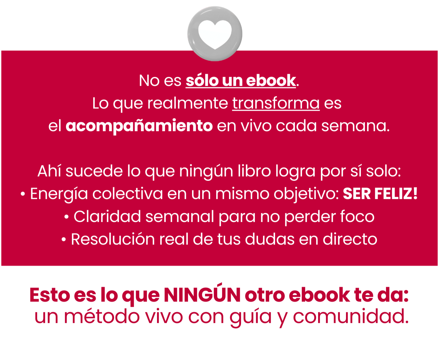 Además de los ebook, tenés mi comunidad privada en WhatsApp y 4 mentorías en vivo para resolver cualquier duda. Nunca vas a estar solx.